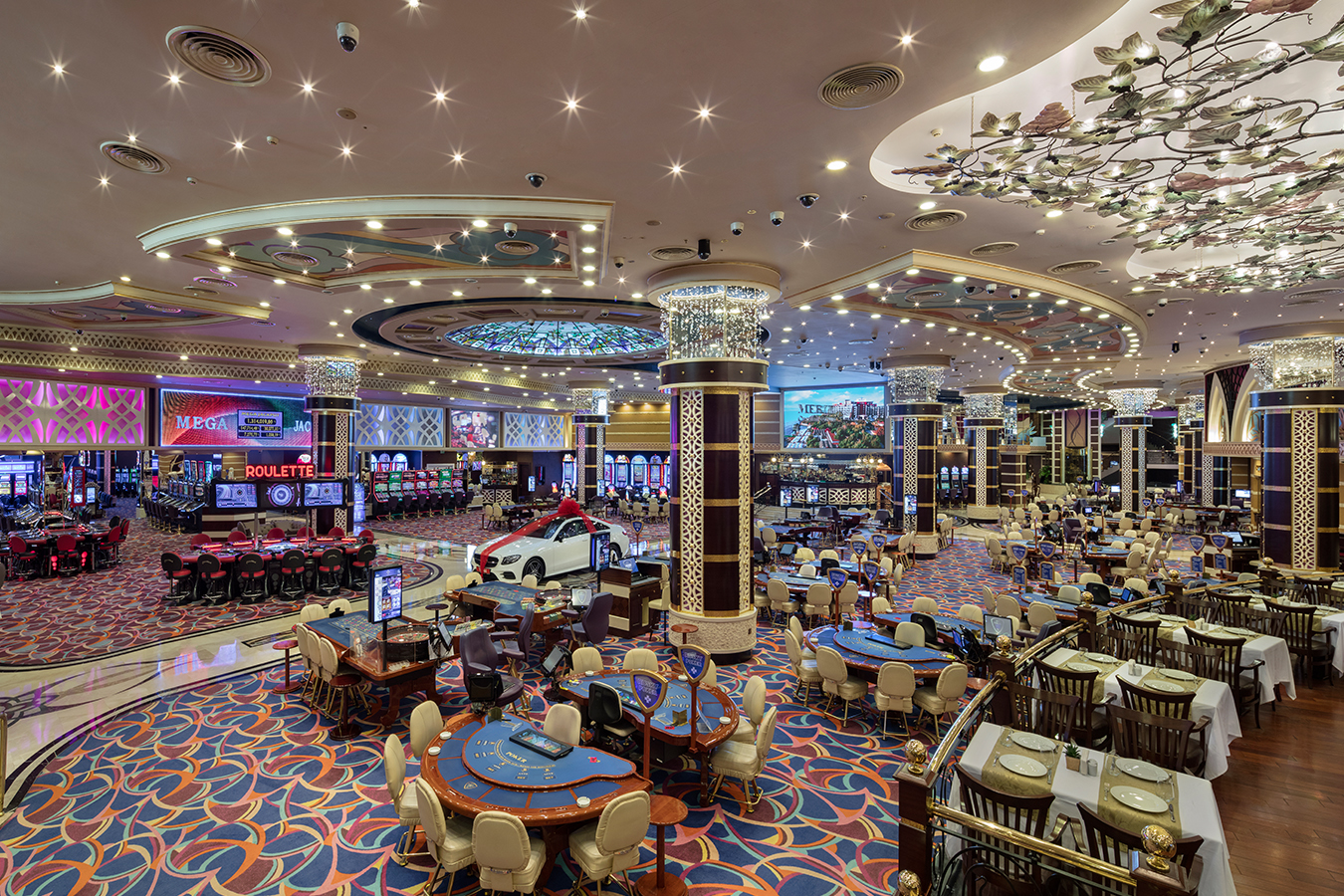 Girne’de eğlenceyi ve konforu zirvede yaşatan Merit Royal Diamond Hotel & Spa, ışıltılı bir dünyanın kapılarını aralıyor. Tesisin kum plajı ve iskelesi bulunuyor.